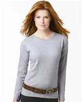 Long-sleeve tee is a must for cooler weather, tailored with a classic feminine fit. 5.5 oz., 100% combed ringspun cotton jersey (Heathers 97/3), 22 singles White is sewn with 100% cotton thread Topstitched rib collar and taped neck Double-needle hem sleeves and bottom